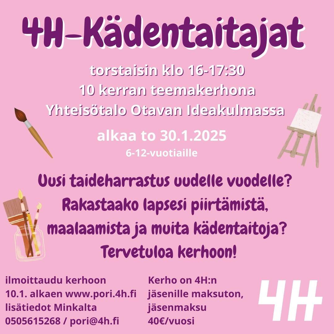 Tervetuloa kuulemaan 4H-kesätyömahdollisuuksista, muun muassa 4H-yrittäjyydestä, joka on hyvä keino työllistää itsesi kesäksi. Ilmottaudu sähköpostitse pori@4h.fi