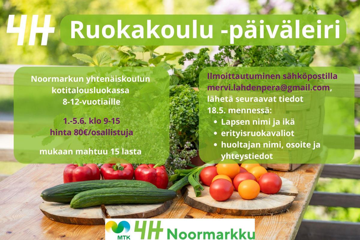 Noormarkun 4H-yhdistys järjestää ruokakoulu -päiväleirin 8-12-vuotiaille Noormarkun yhtenäiskoulun kotitalousluokassa!